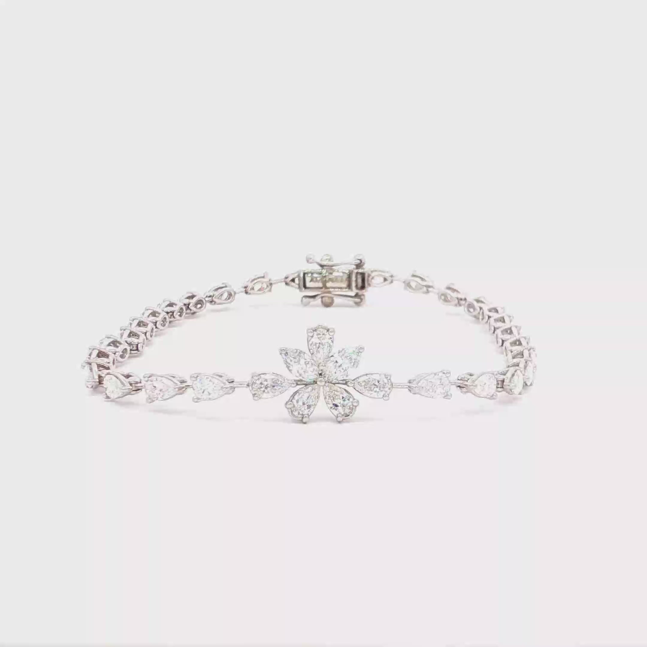 Delicate and captivating, the Flower Center Tennis Bracelet features a graceful row of lab-grown diamonds with a standout floral motif at its center, all set in luxurious 18K gold. This elegant design combines timeless sparkle with a touch of nature-inspired beauty, perfect for adding a feminine charm to any look.